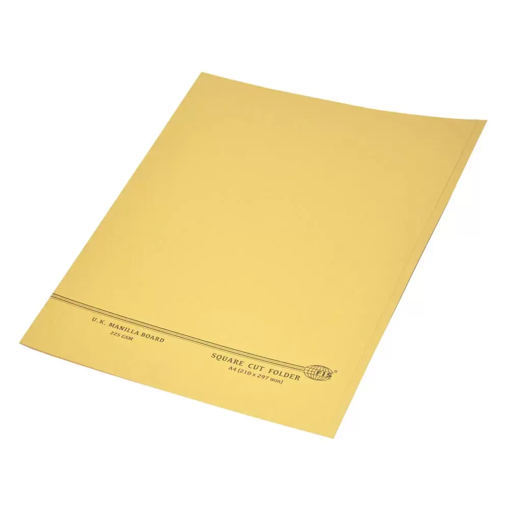 100-Piece FIS Square Cut Folders Without Fastener, Kendal Manila, Yellow Color, 225gsm A4 Size – FSFF9A4KYL