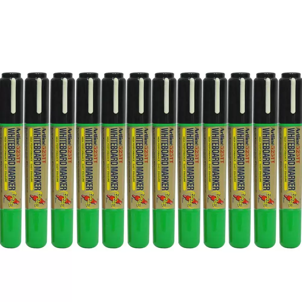 Artline 525T 2in1 Whiteboard Markers 2.0mm-5.0mm, Pack of 12 Pcs, Black/Green Colors, Polyester Fibre Tip – ARMK525TBKGR