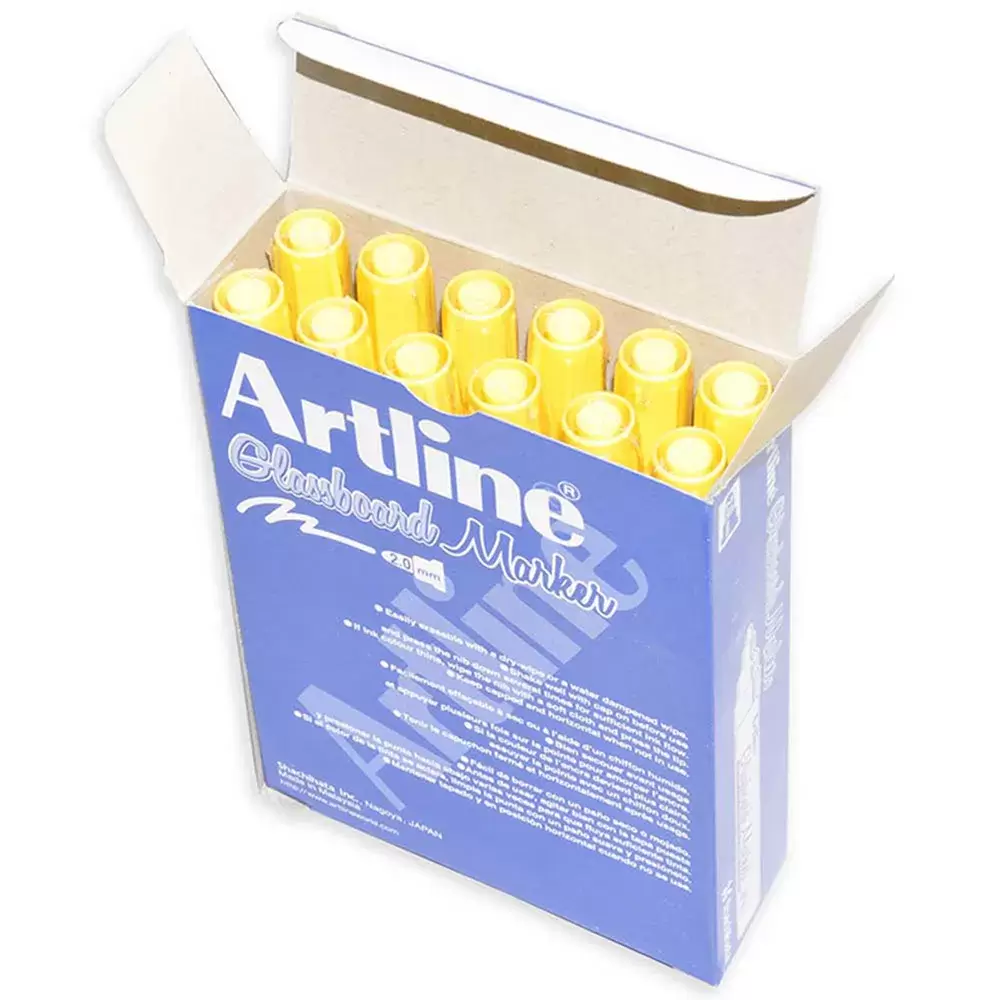 Artline Glass Board Marker Pack of 12, Colour: Fluoro Yellow,2.0mm – ARMKEPG-4FYL