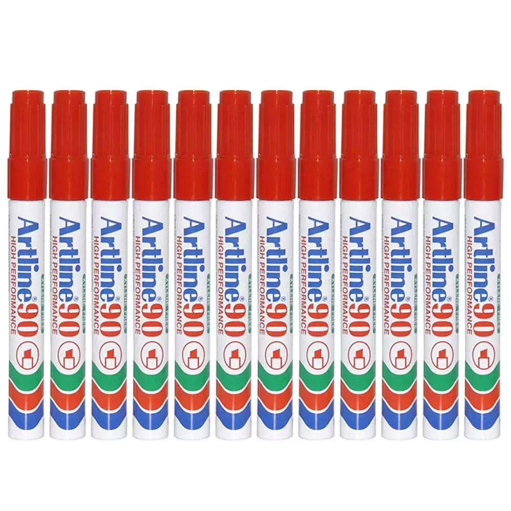Artline Permanent Marker, Pack of 12, Ek-90 2.0-5.0mm Water Proof, Red – ARMK90XFRE