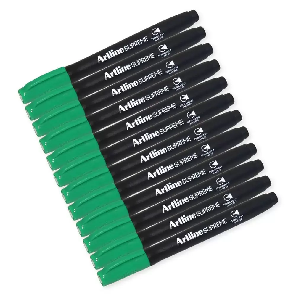 Artline Supreme Permanent Marker Pack of 12, 1.0mm, Bullet, Green – ARMKEPF-700GR