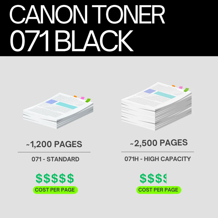 The Canon Toner 071H offers an ultra-high output of 4,100 pages from a compact cartridge, providing more efficient printing and less downtime. Utilizing Magnetic Sphere toner technology, it optimizes print speeds while ensuring low energy consumption, making it a smart choice for both high-volume printing and environmentally conscious users.