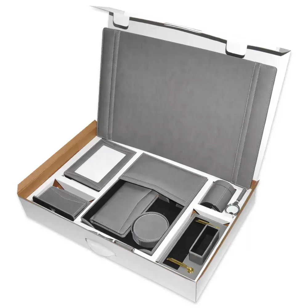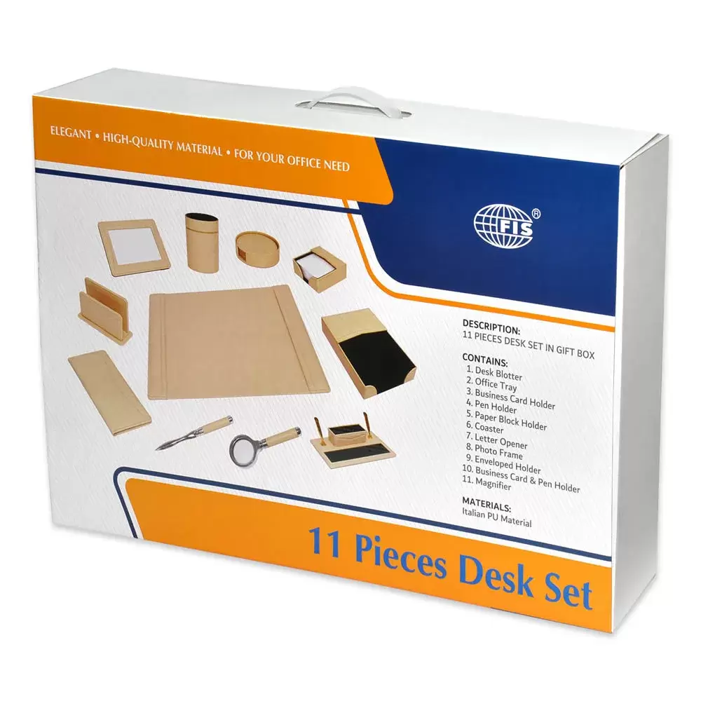 FIS 11 Pieces Executive Desk Set Italian PU, Grey Color – FSDS182GY