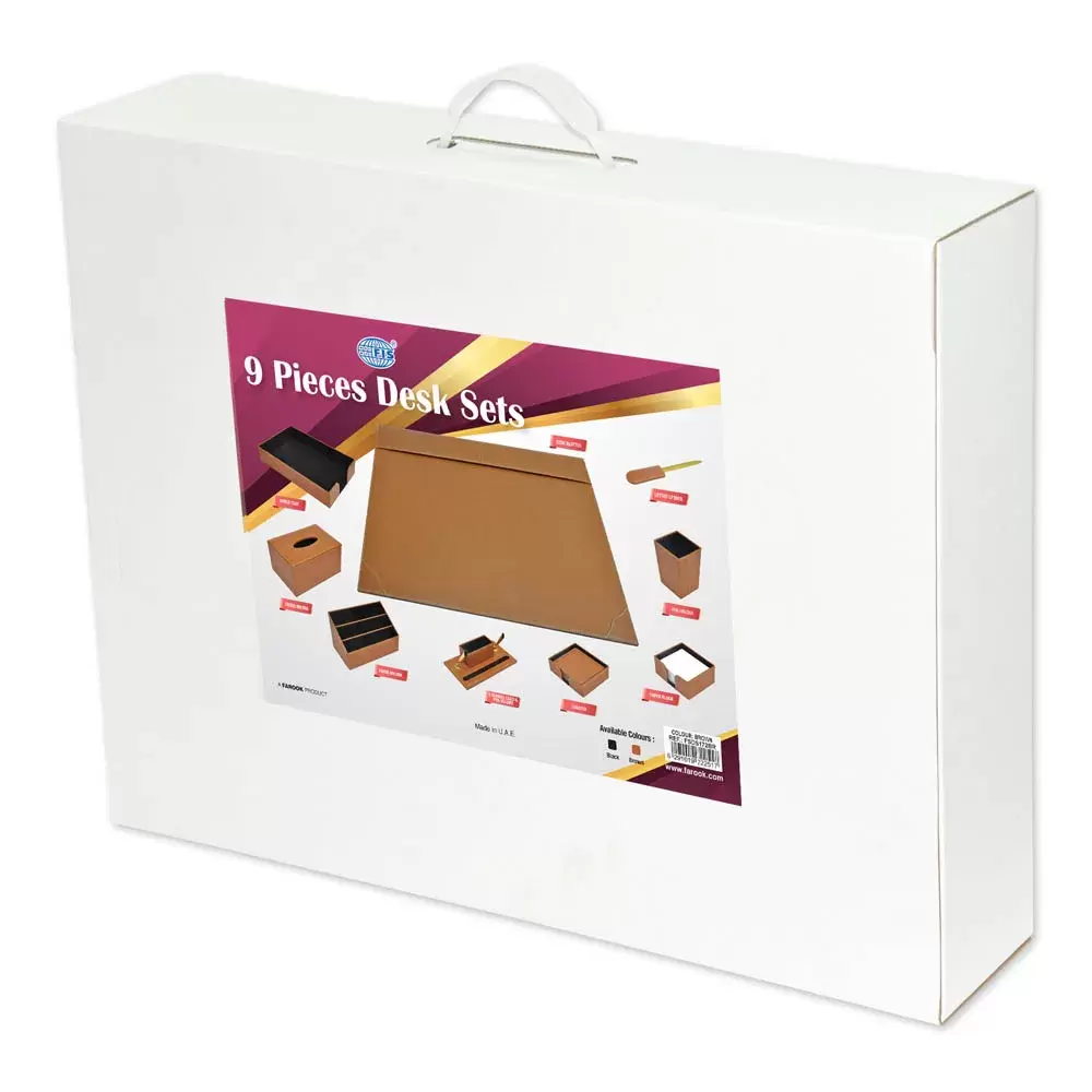 • FIS 9 Pieces – 1 x Desk Blotter, 1 x Office Tray, 1 x Paper Holder, 1 x Tissue Box, 1 x Business Card And Pen Holder, 1 x Pen Holder, 1 x Letter Opener, 1 x Paper Block Holder, 1 x Coaster
