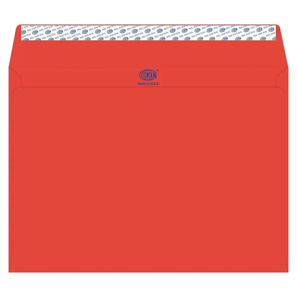 FIS Color Envelopes Peel & Seal, Neon Colors, Pack of 50 Pcs. Red Color, C4 (229 x 324 mm), 80 GSM – FSEC8042PBRE50