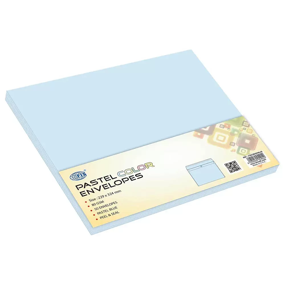FIS Color Envelopes Peel & Seal, Pastel Colors, Pack of 50 Pcs. Blue Color, C4 (229 x 324 mm), 80 GSM – FSEC8042PBL50