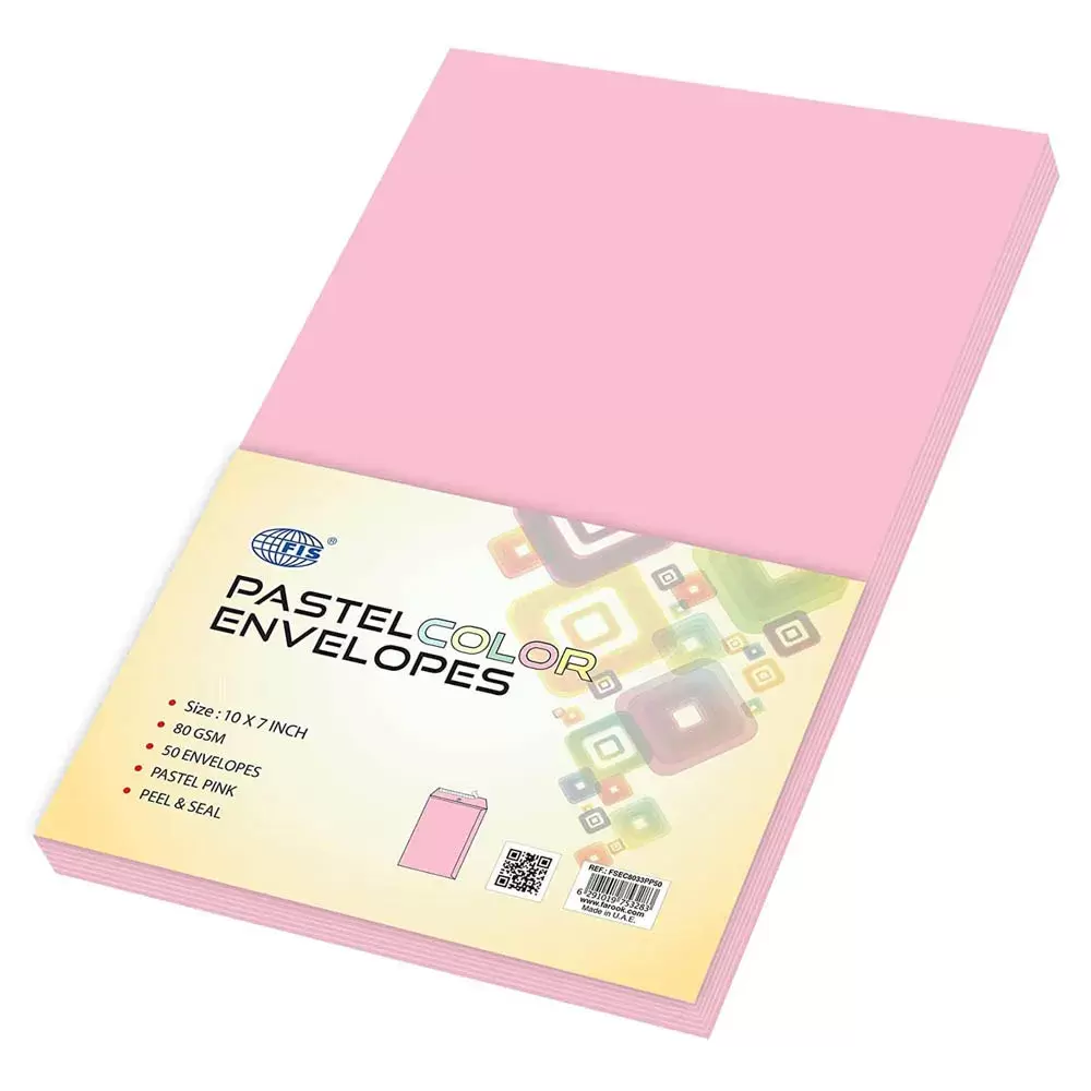 FIS Color Envelopes Peel & Seal, Pastel Colors, Pack of 50 Pcs. Pink Color, 10 x 7 Inch, 80 GSM – FSEC8033PP50