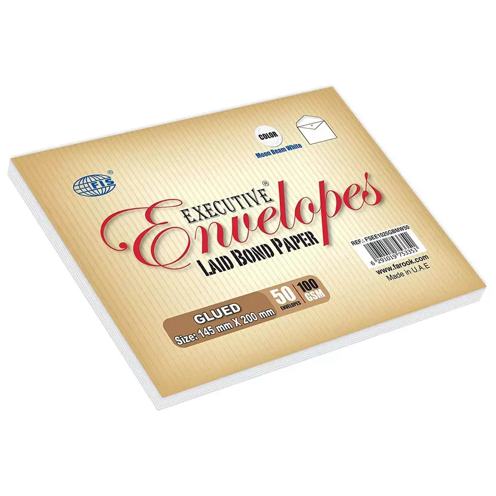 FIS Executive Envelope, Glued, Moon Beam White Colors, Pack of 50 Pcs. 145 x 200 mm, 100 GSM – FSEE1025GBMW50