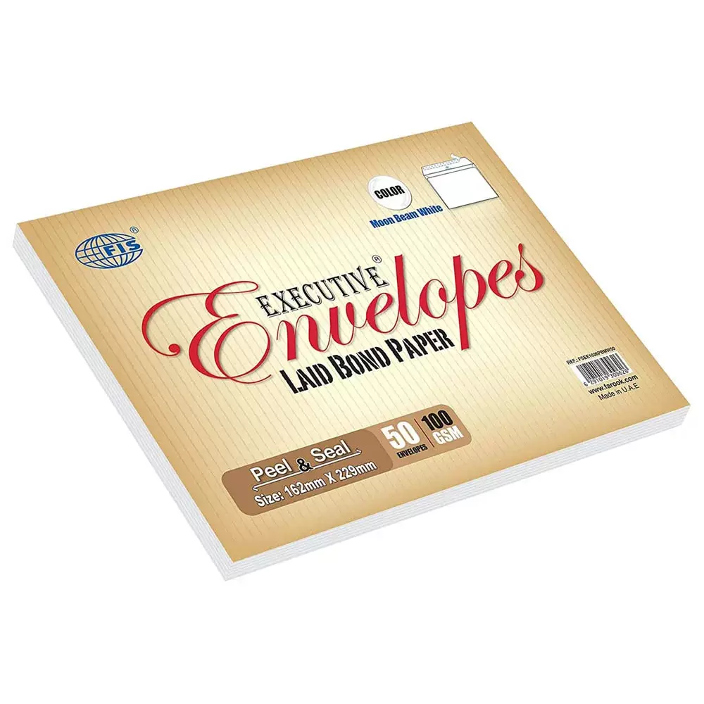 FIS Executive Envelope Peel & Seal, Pack of 50 Pcs. Moon Beam White Colors, C5 (162 x 229 mm), 100 GSM – FSEE1026PBMW50