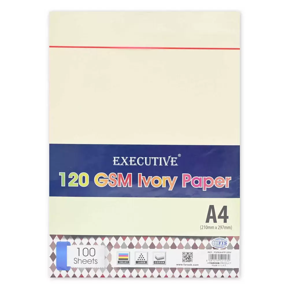 FIS “Executive” Ivory Paper, Size A4 (210x297mm), 120 GSM, 100 Sheets, Ivory Color, Suitable for Inkjet, Laser, Copier – FSPAA4FP120IV