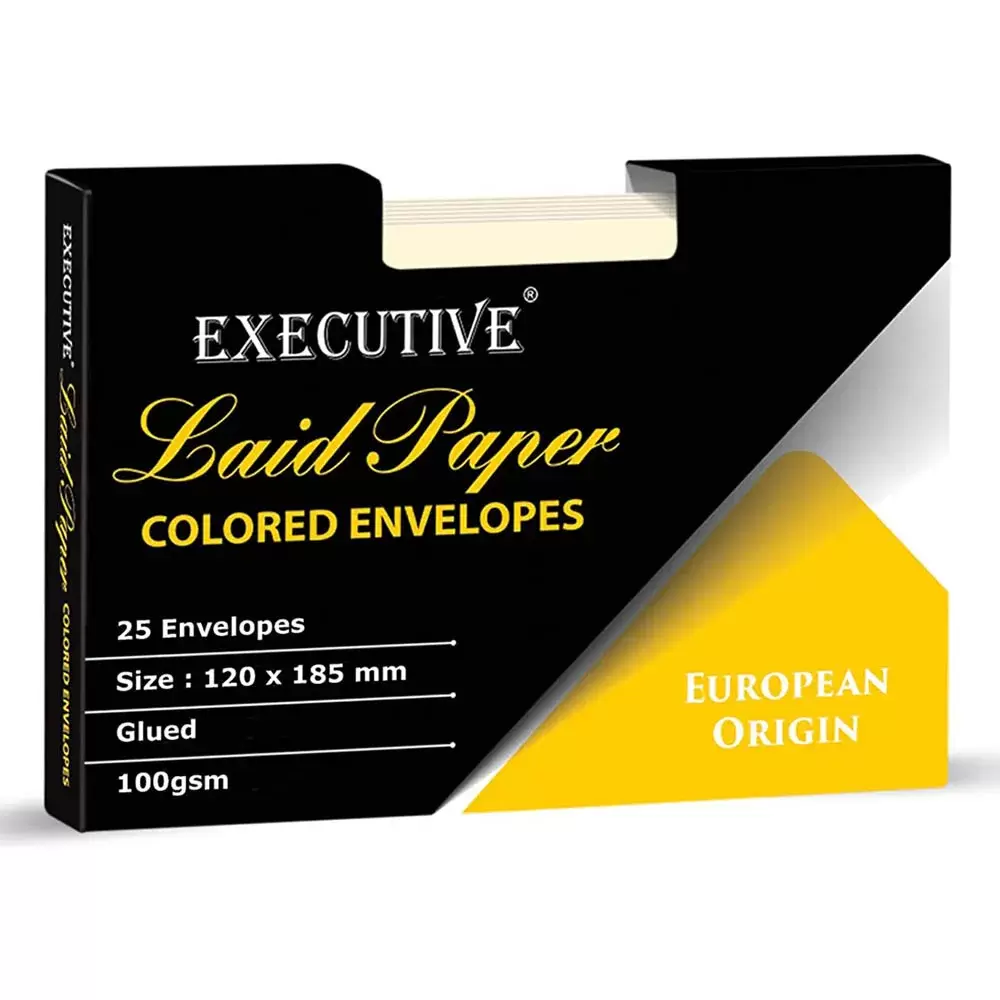 FIS Executive Laid Paper Envelopes Glued, Pack of 25 Pcs. Camelle Off White Color, 120 x 185 mm Size, 100 GSM – FSEE1020GOWB25