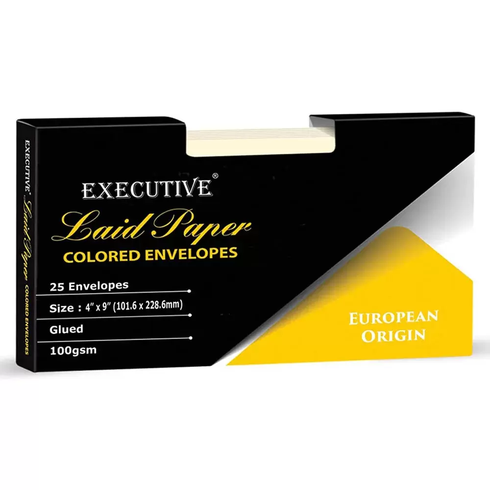 FIS Laid Paper Envelopes Glued, Pack of 25 Pcs. Camelle Off White Color, 4 x 9 inch Size, 100 GSM – FSEE1028GOWB25