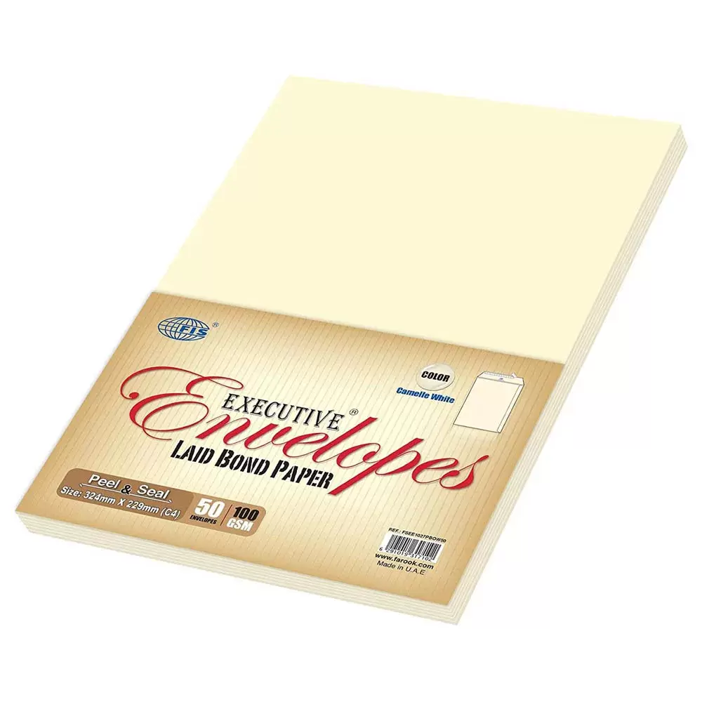 FIS Laid Paper Envelopes Peel & Seal, Pack of 50 Pcs. Camille Off White Color, C4 (324 x 229 mm), 100 GSM – FSEE1027PBOW50