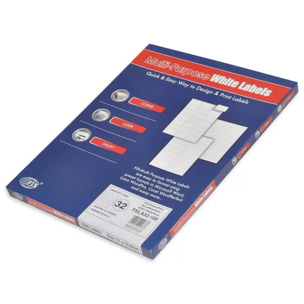 FIS Multipurpose Laser Labels, Colour White, Size 66X25.4mm (33 Stickers x 100 Sheet) A4 Size, E.U. Origin Material – FSLA33-1-100