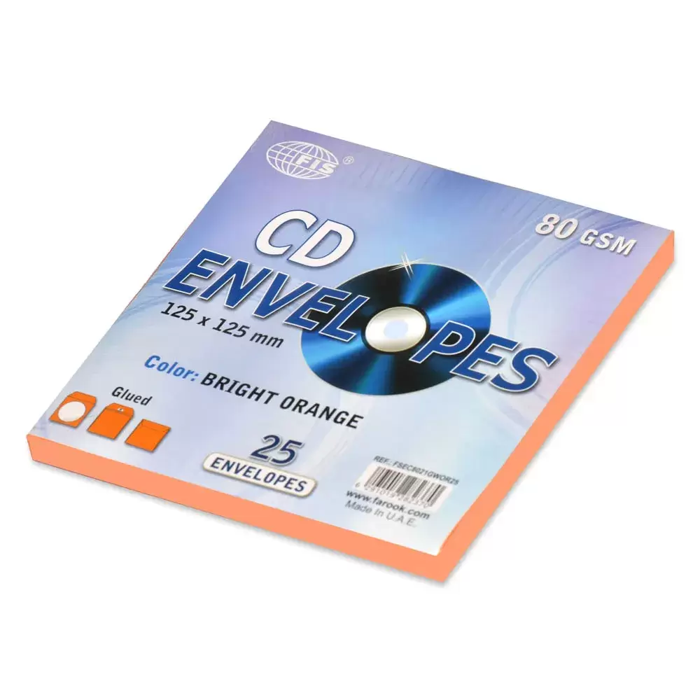 FIS Pack of 25 Color Envelopes, 80 GSM, Glued, Size 125 X 125mm With Window, Color Bright Orange