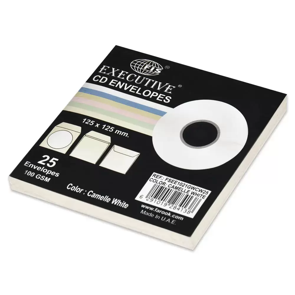 FIS Pack of 25 Executive Laid Paper Envelopes, 100 GSM, Size 125 X 125mm, Glued Window Cut, Colour Camelle White