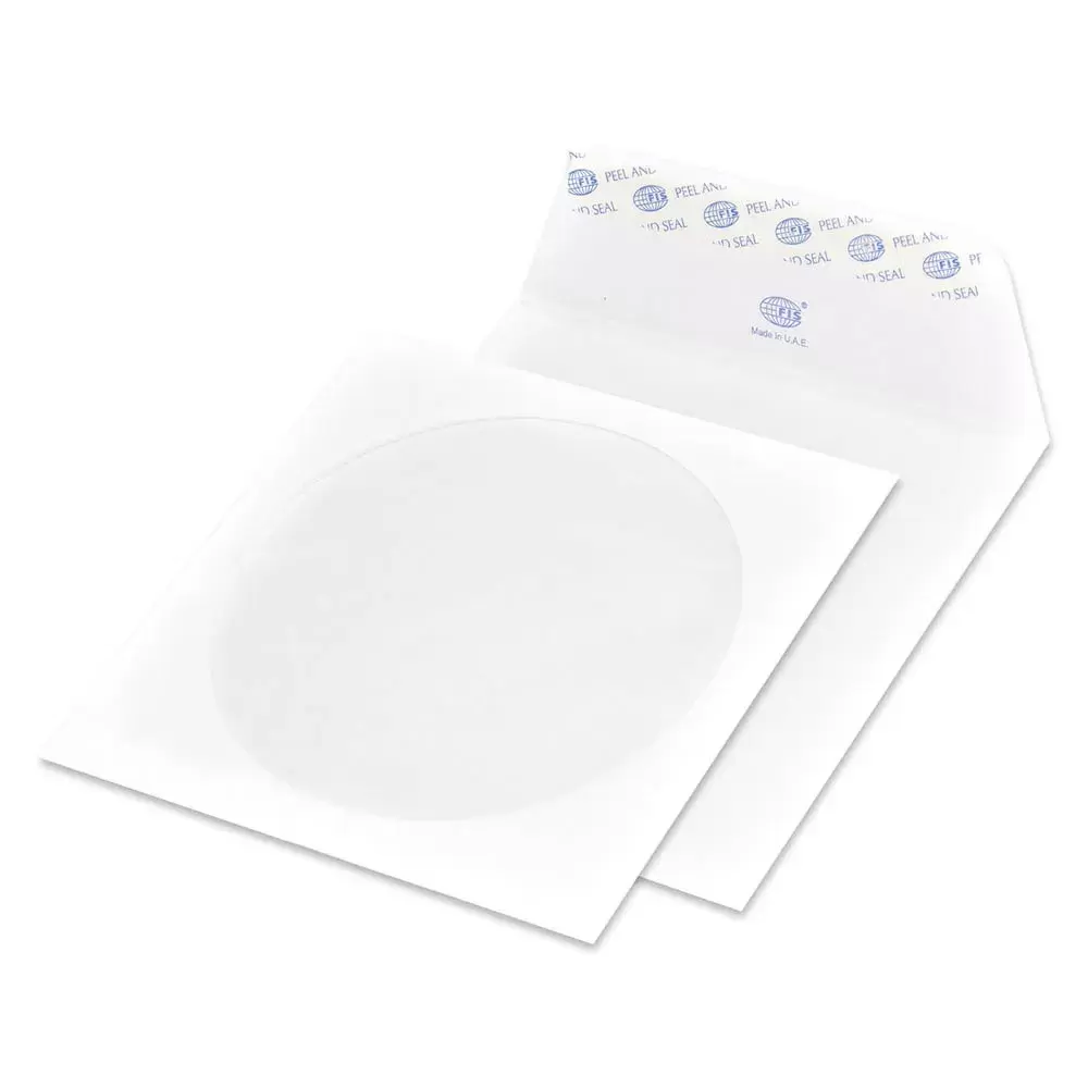 FIS Pack of 25 White Envelopes, 100 GSM, Peel & Seal With Window, Size 125 X 125mm