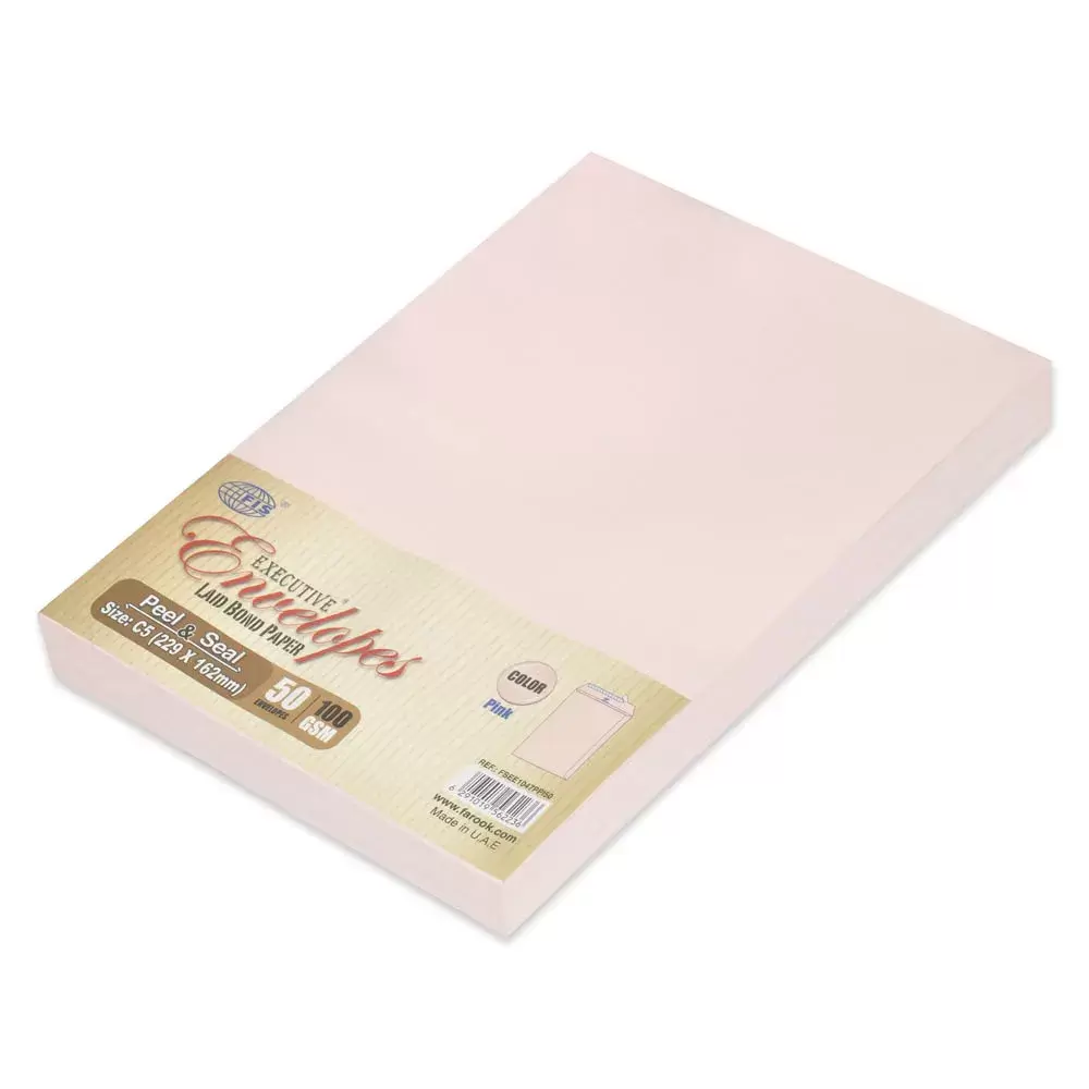 FIS Pack of 50 Executive Envelopes, 100 GSM, Peel & Seal, Size C5(229 X 162mm), Color Pink