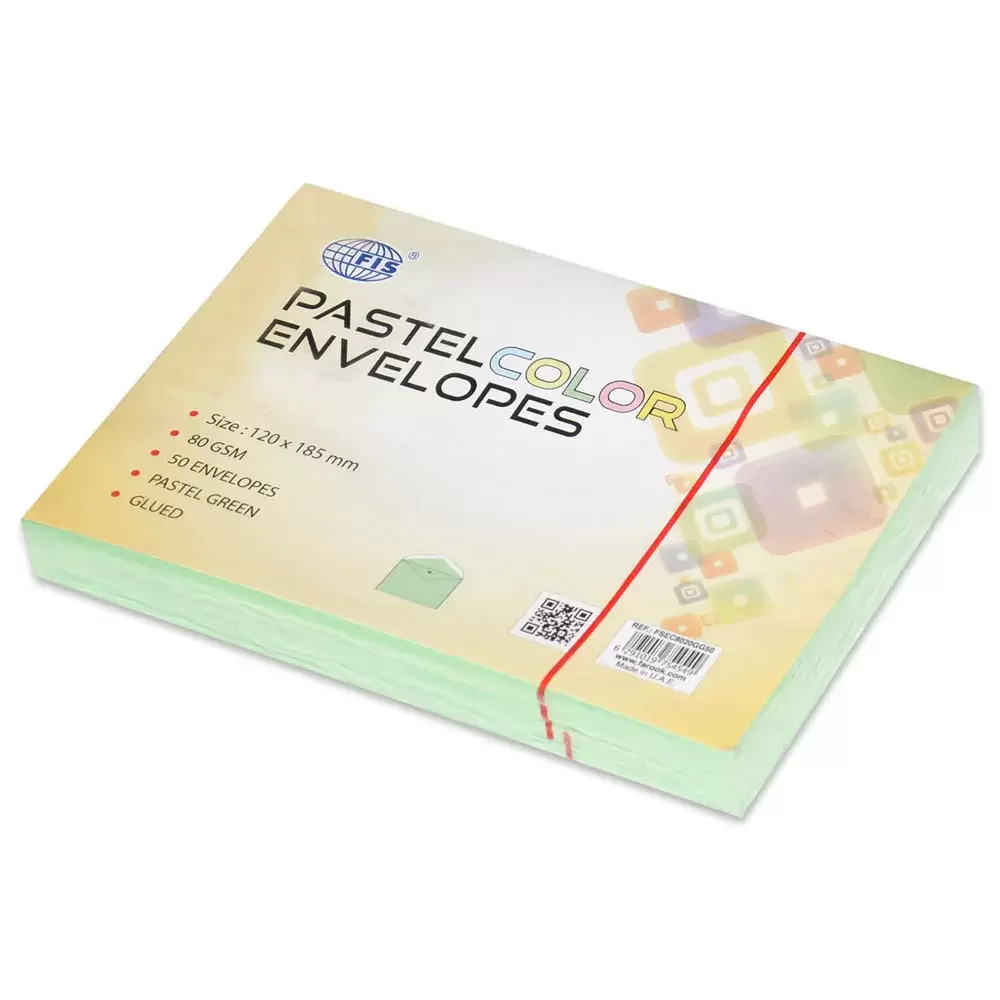 FIS Pack of 50 FIS Pastel Color Envelopes, 80 GSM, Size 120 X 185mm, Glued, Color Green