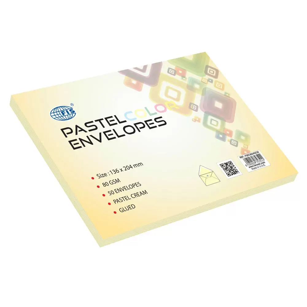 FIS Pack of 50 FIS Pastel Color Envelopes, 80 GSM, Size 136 X 204mm, Glued, Color Cream