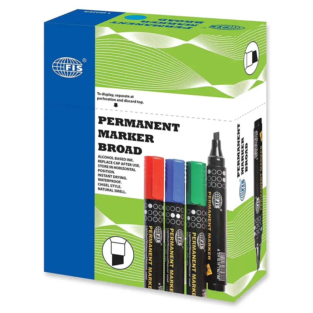 Fis Permanent Markers – Broad 12 Pieces (blue) – FSMKPB04BL