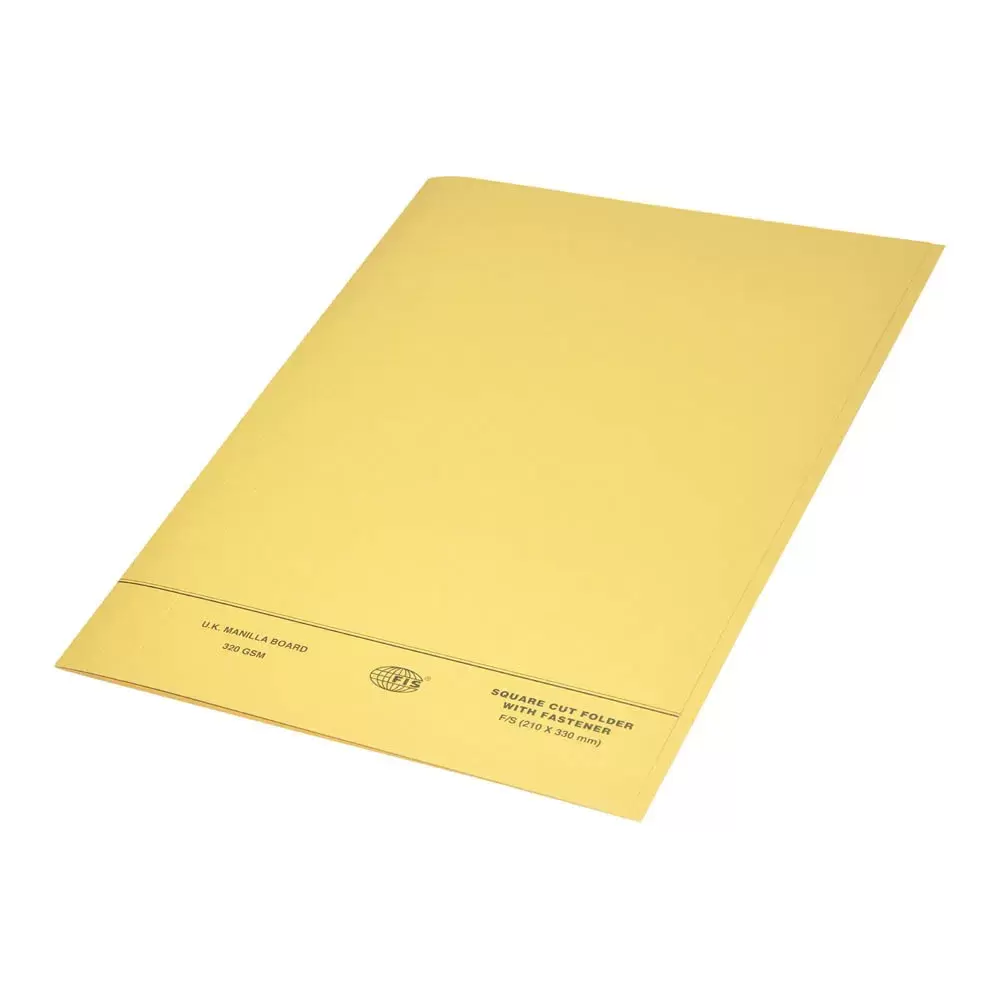 FIS Square Cut Folders With 8 cm Fastener Yellow Color, Pack of 50 Pcs, 320 gsm, F/S (210 x 330 mm) Size – FSFF7FYL