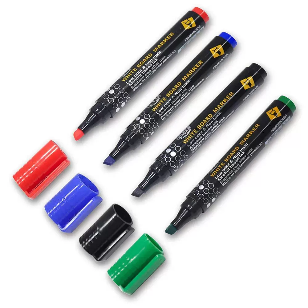 Type:White Board Markers, Tip Type:Broad, Number of Pieces:4 Pieces, Colour:Assorted , Colours
