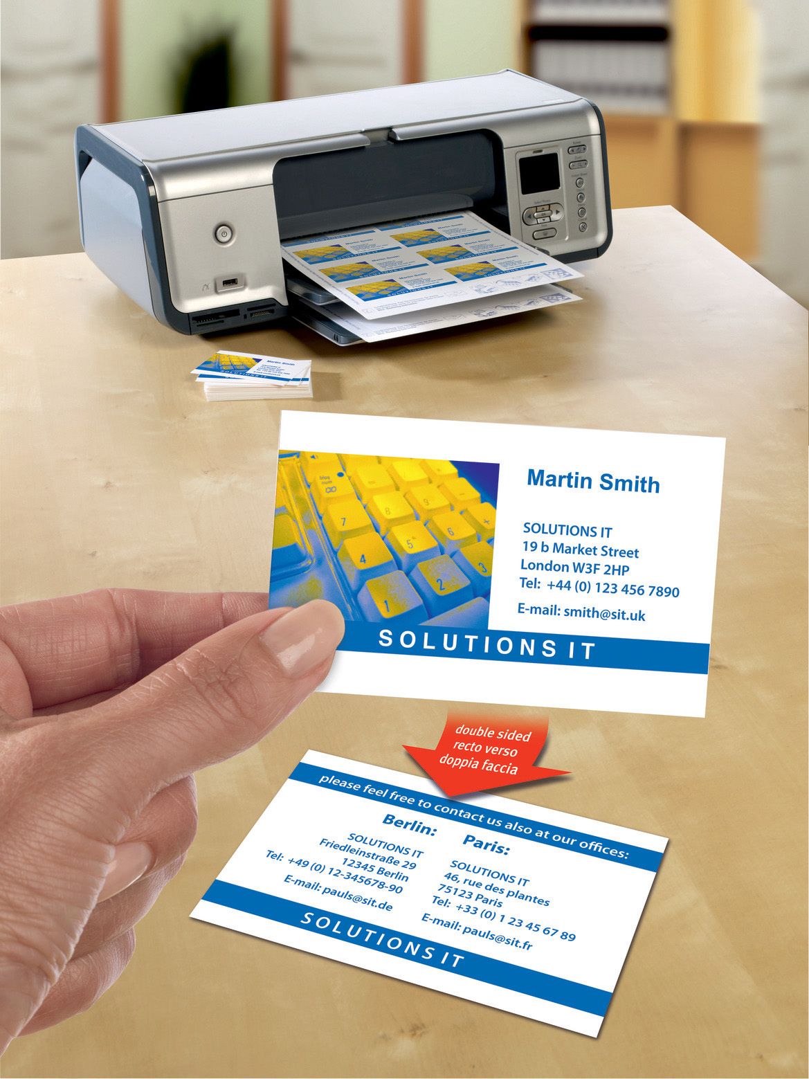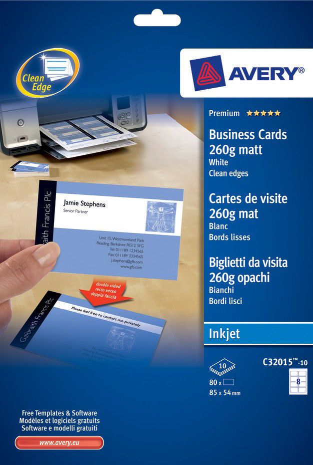 The two-sided printable business card are easy to design and print and with their unique Quick&Clean technology for fast separation and smooth edges, giving a totally professional look and feel. On the back of the business card, additional information such as opening hours, directions and services can be added. Ideal for creating Business Cards, noted cards etc