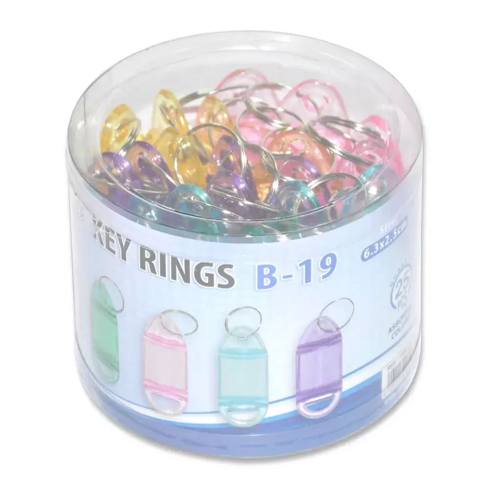 FIS Key Rings 25 Pieces Per Pack, Assorted Colors, 4.5 x 2.5 cm Size - FSKCB-15